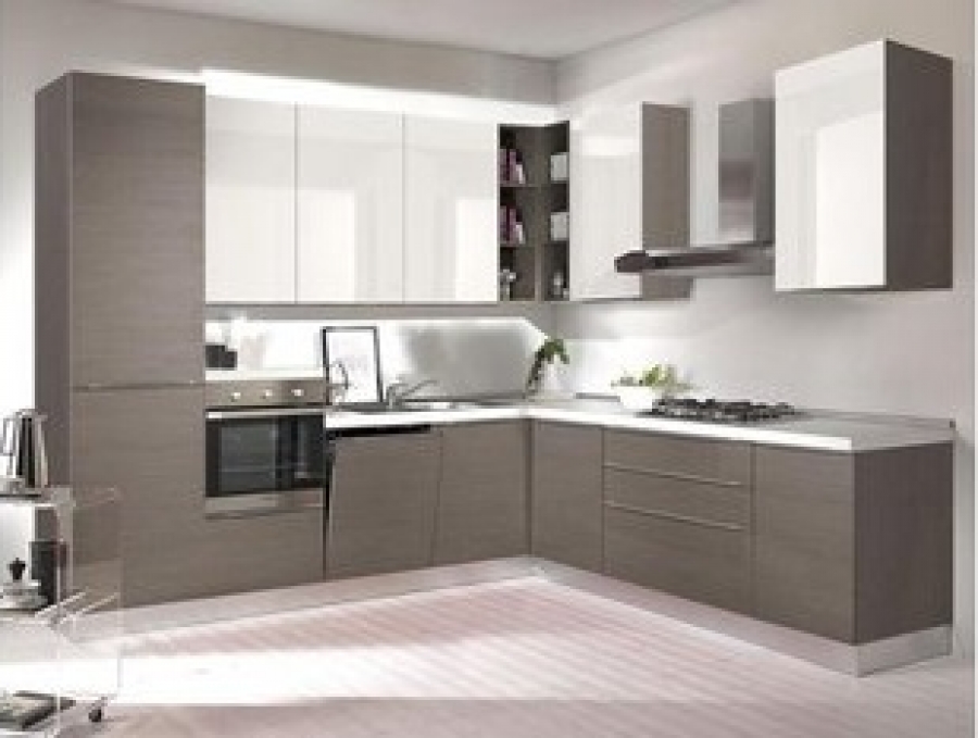 ΚΟΥΖΙΝΑ ΑΠΟ ΒΑΚΕΛΙΤΗ ΣΚΟΥΡΟ ΜΕ ΓΚΡΙ ΑΝΑΓΛΥΦΗ ΥΦΗ, ΛΕΥΚΟ ΠΑΓΚΟ, ΜΠΑΖΑ INOX.